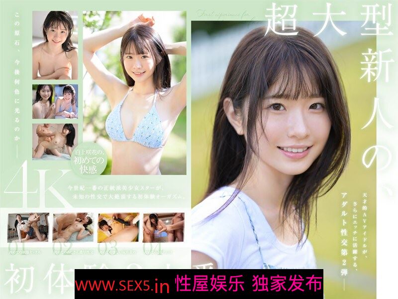 【中文片名】:超大型新人 白上咲花的初次体验三部曲。天才AV偶像的人生初次尝试,沉溺于快乐中。