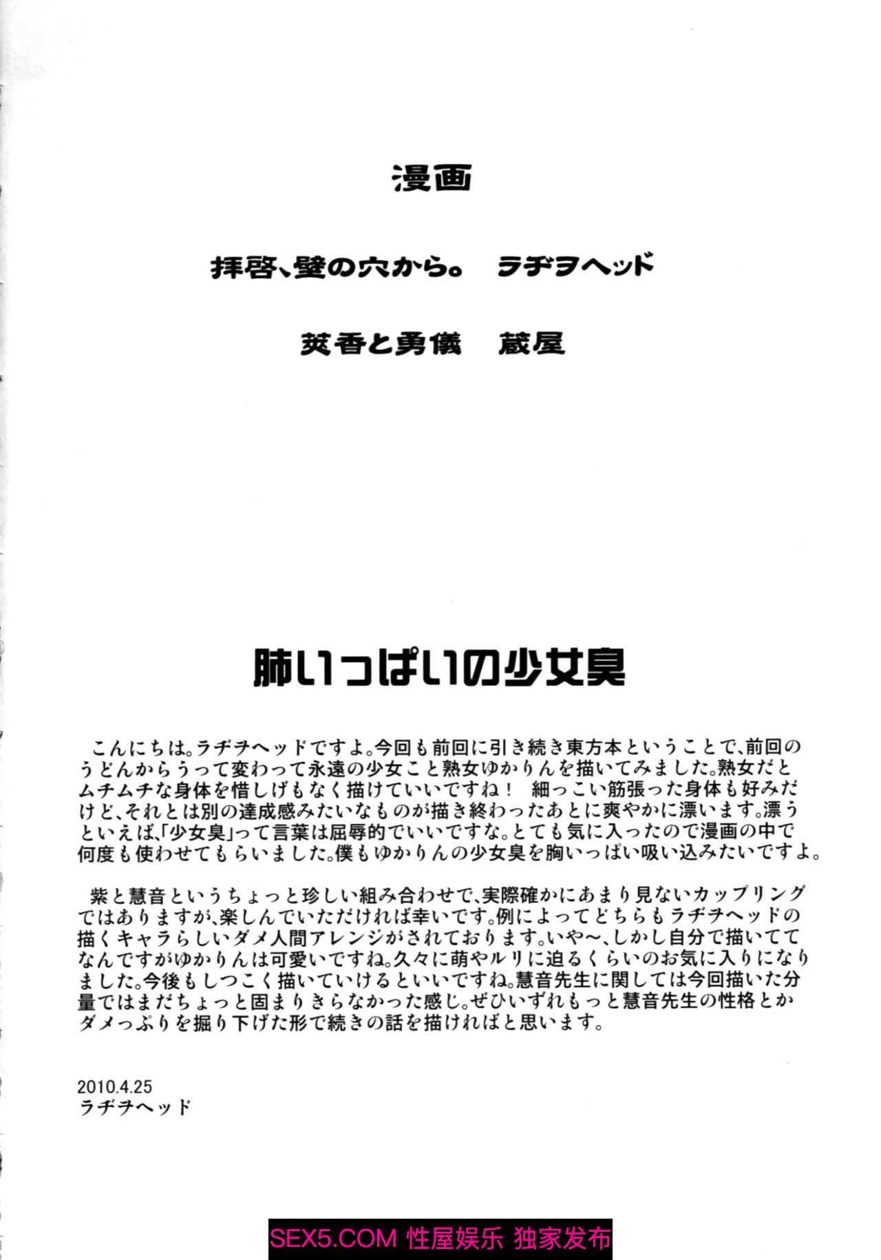 » [動漫] (ふたけっと6) [革命政府広報室 (ラヂヲヘッド)] 拝啓、壁の穴から。 (東方Project) [中国翻訳][27P]