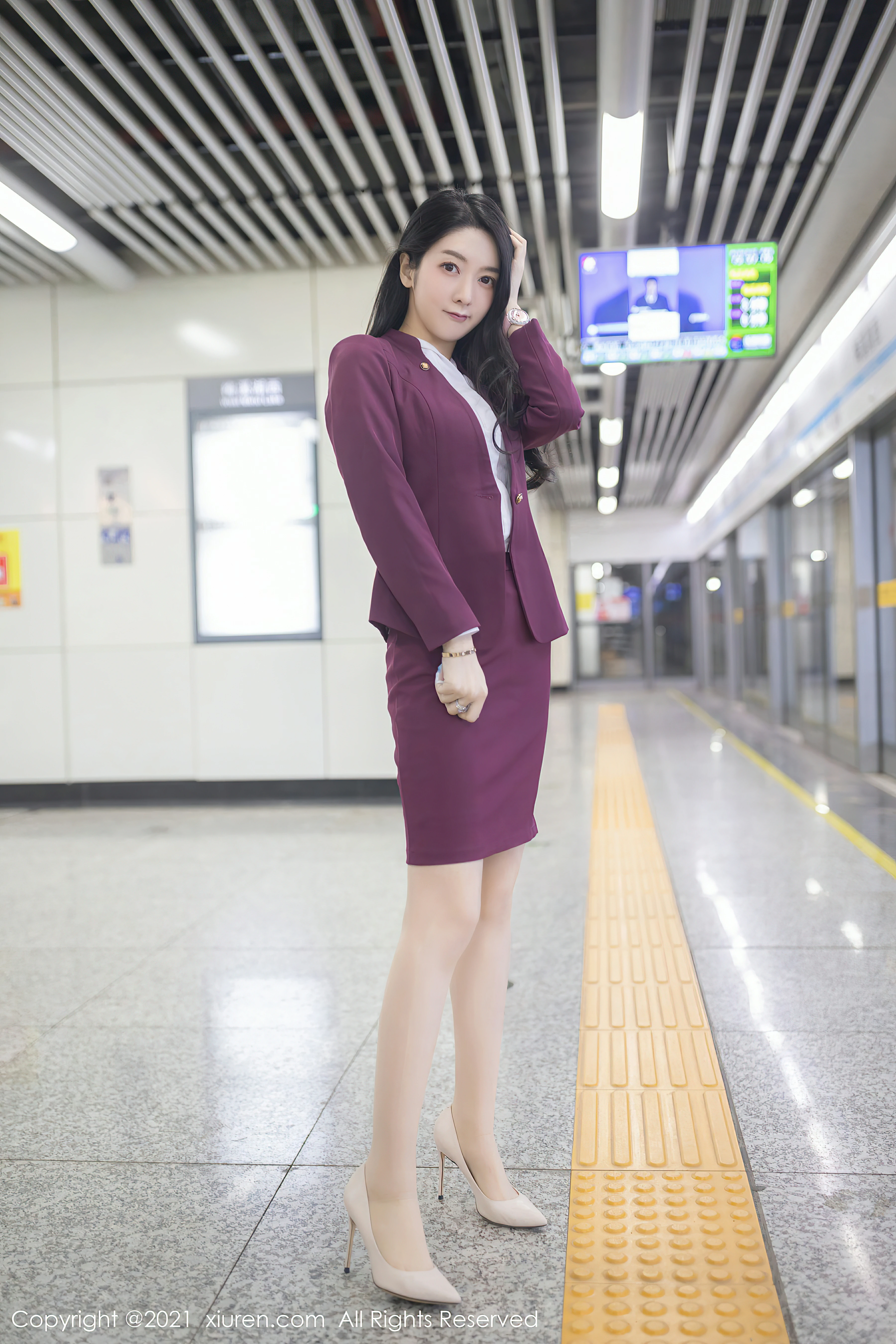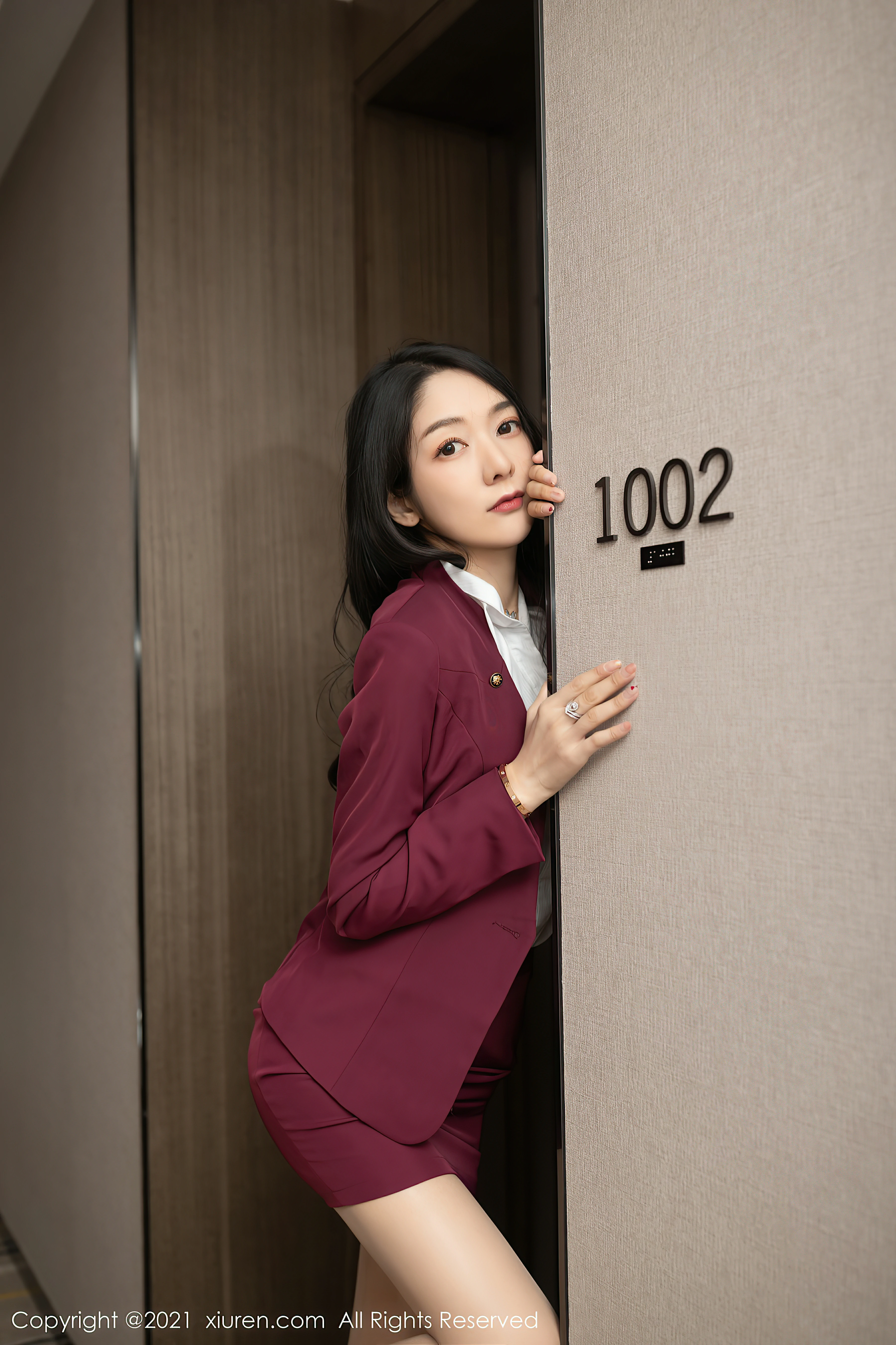 » [寫真] 性感空姐红色制服与粉色内衣加肉丝美腿[83P]