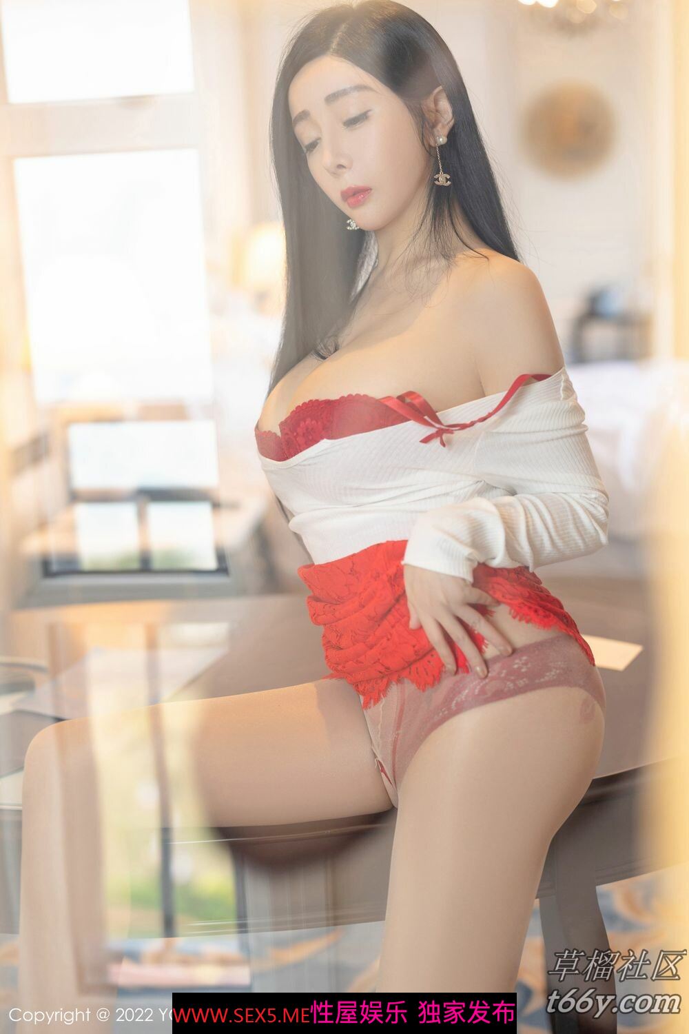 » [寫真] 一顰一眸皆帶著性感氣息的嬌媚,紅色內衣搭配原色絲襪[68P]