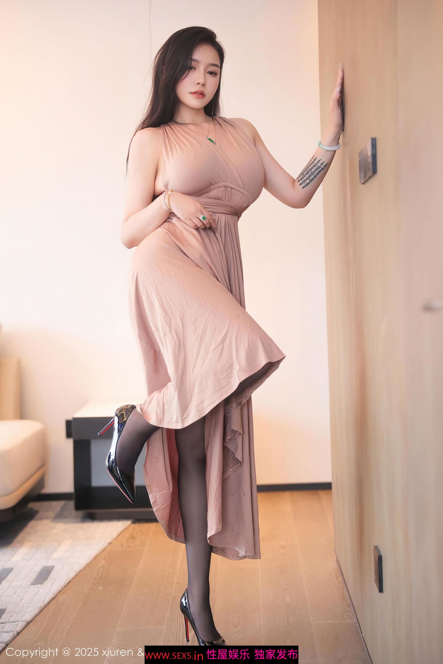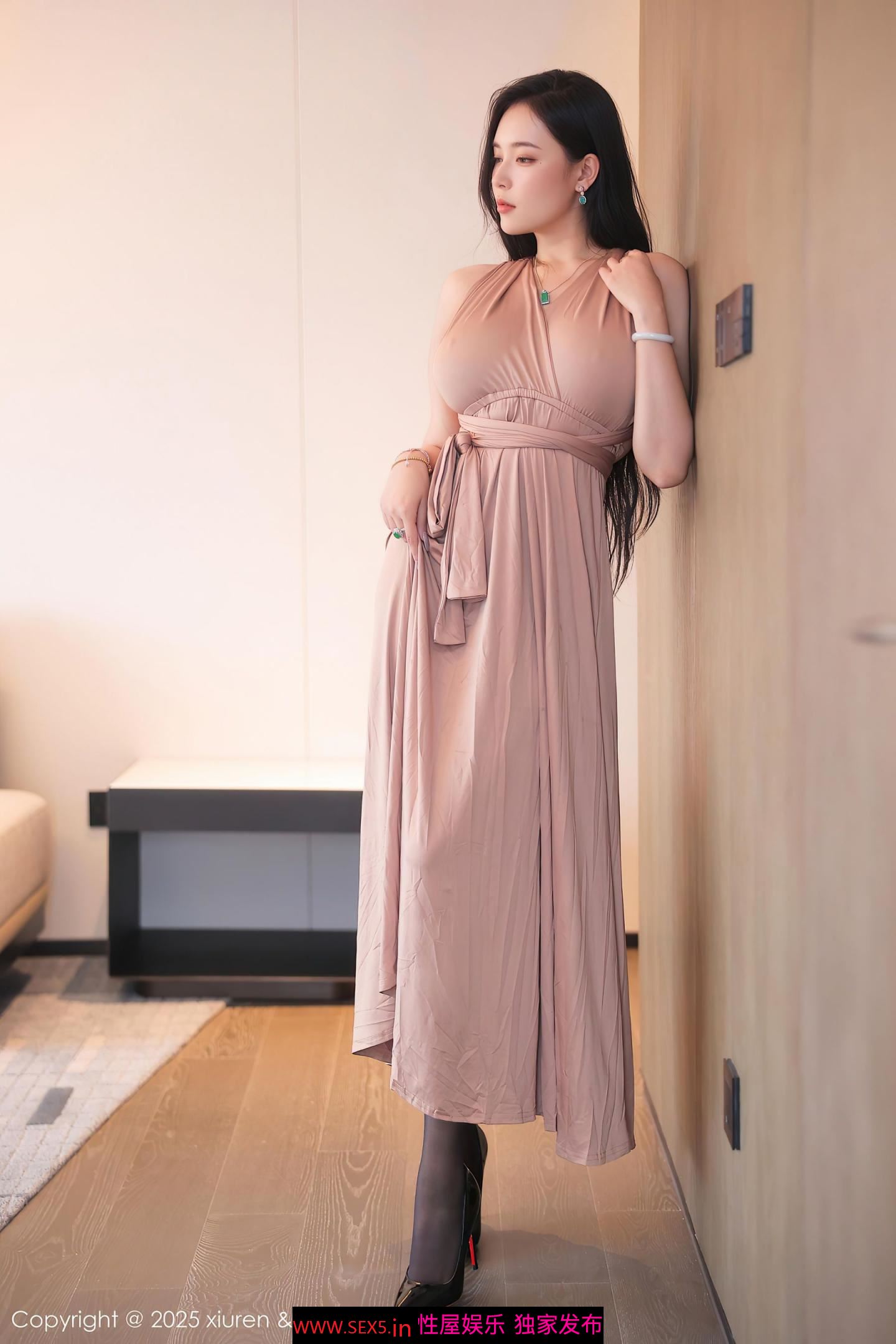 » [寫真] 秀人网嫩模 娜比 灰色长裙 性感黑丝 爆乳美腿[87P]