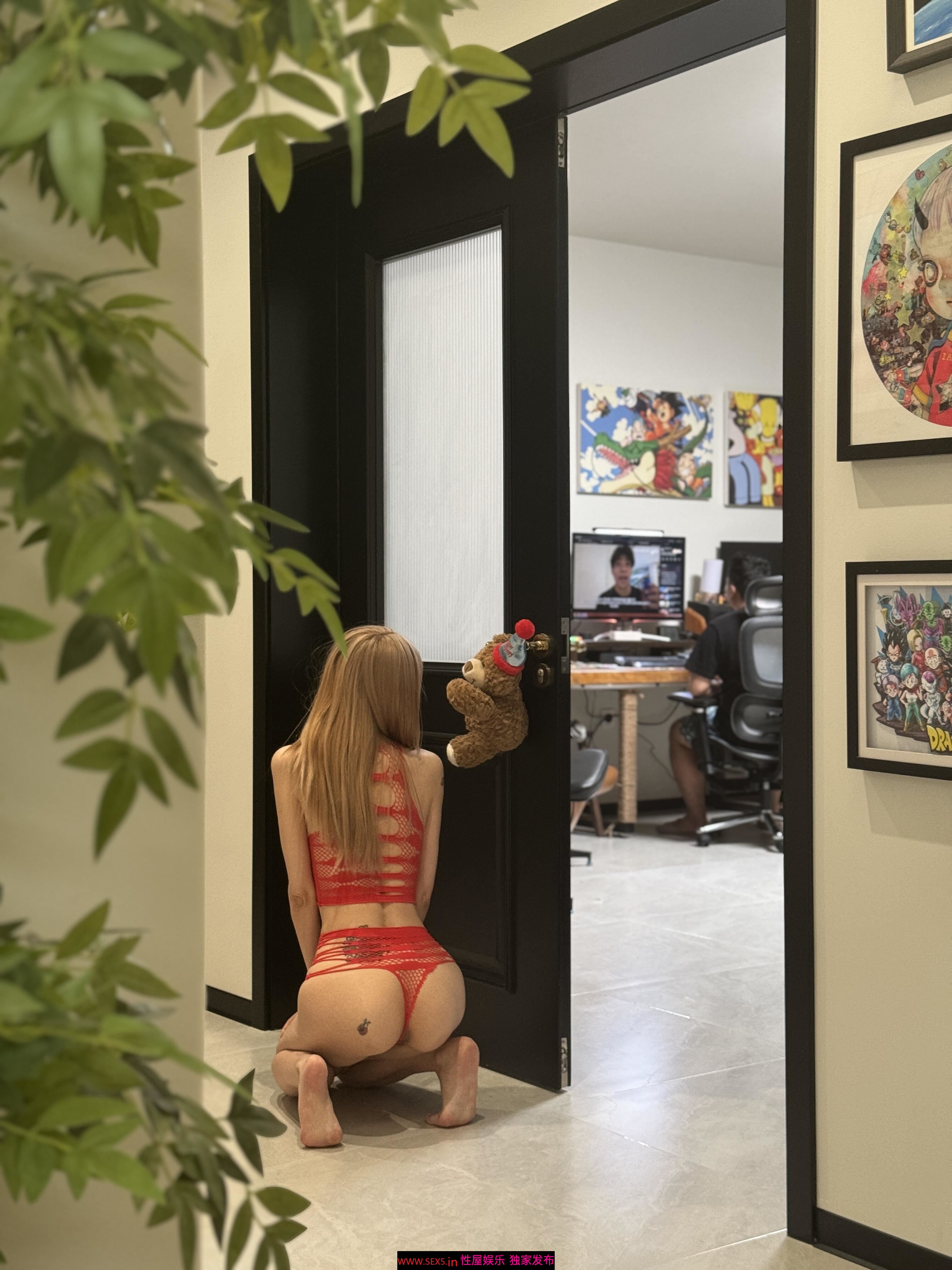 男朋友在书房看b站呢,主人让我在他门口拍几张,穿着情趣睡衣去他门口,慢慢脱去身上的衣服,太羞耻了,好怕男朋友发现~