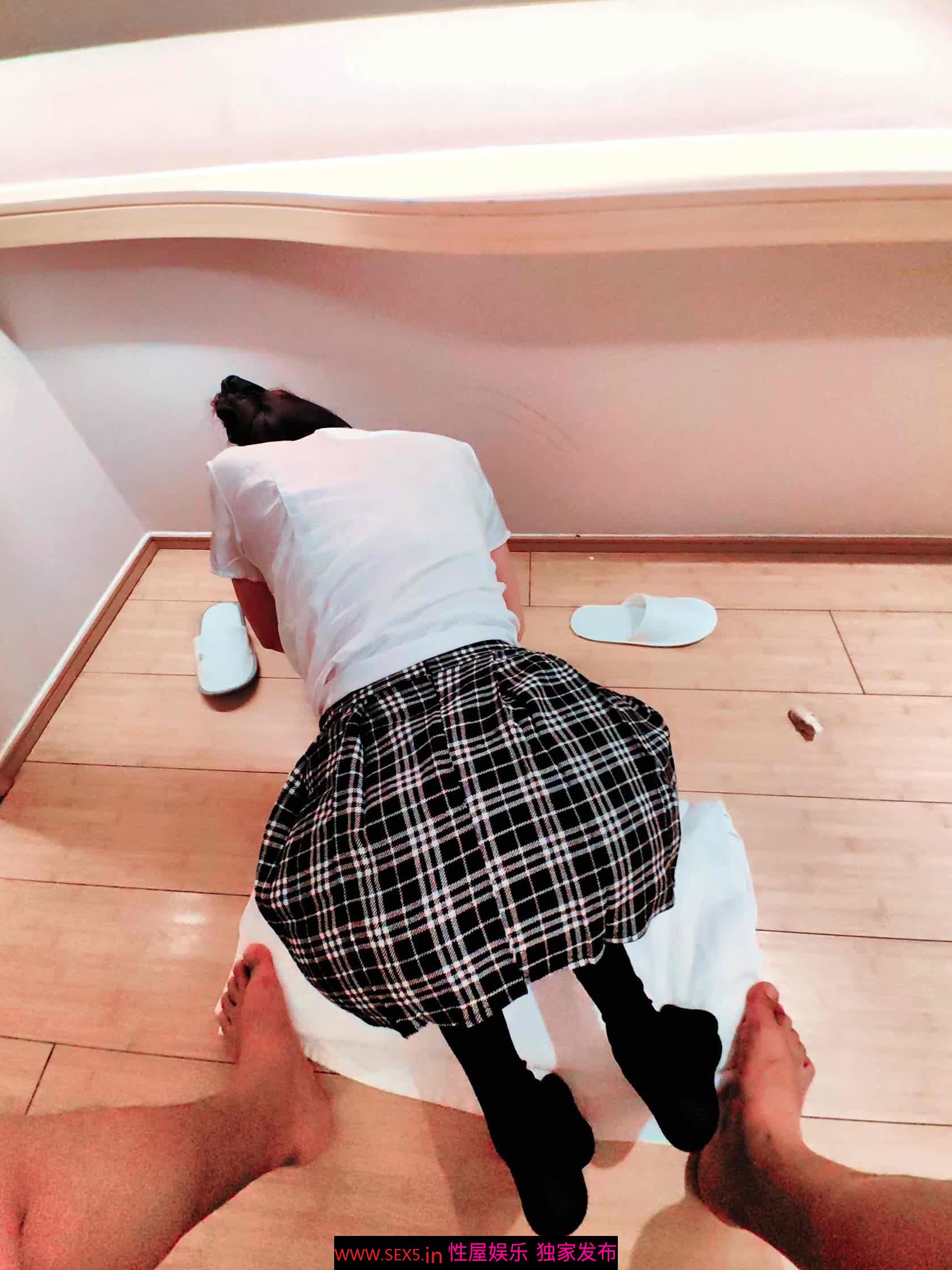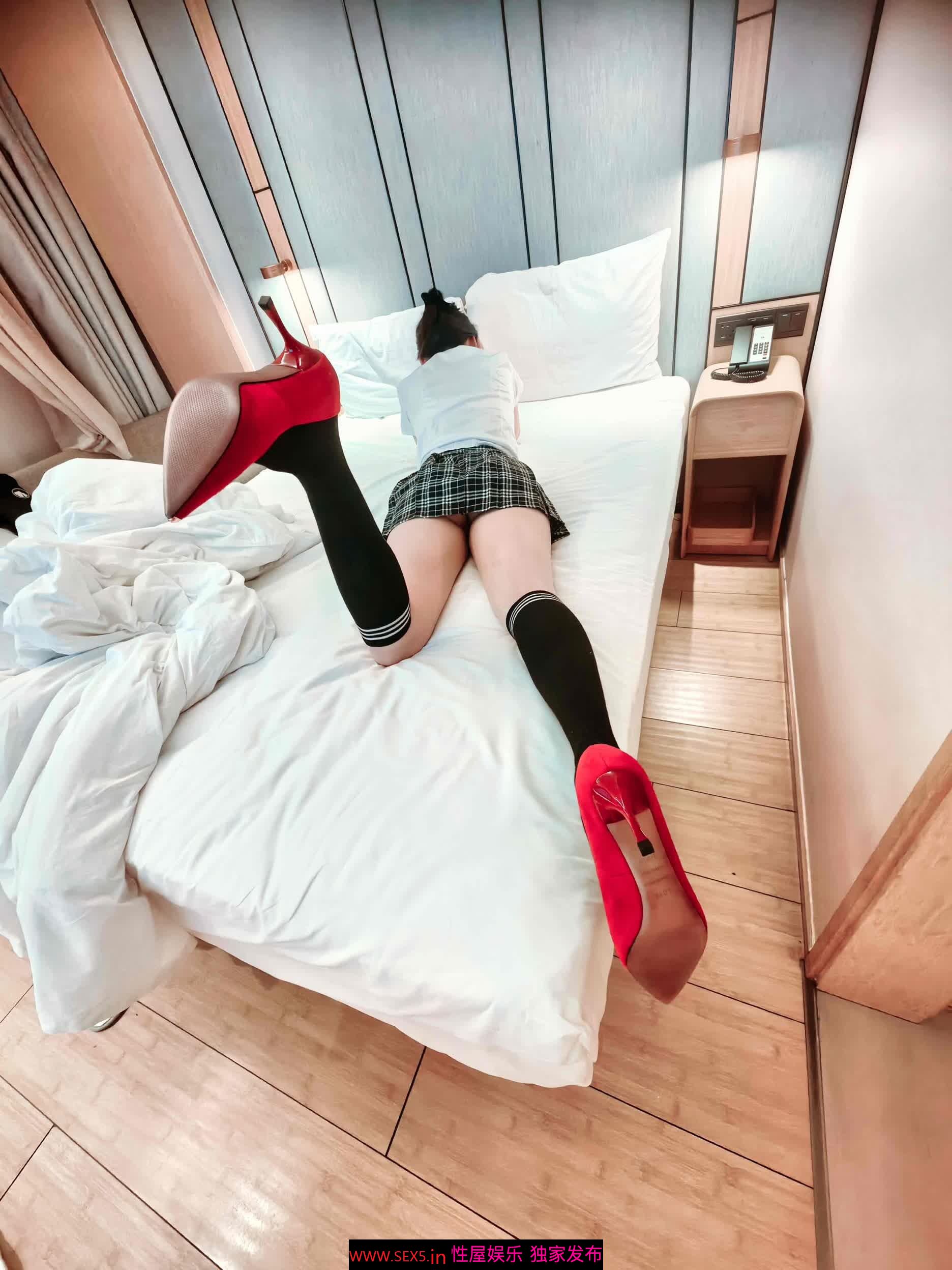 学生妹穿学生装,红色高跟又增加了一丝性感。