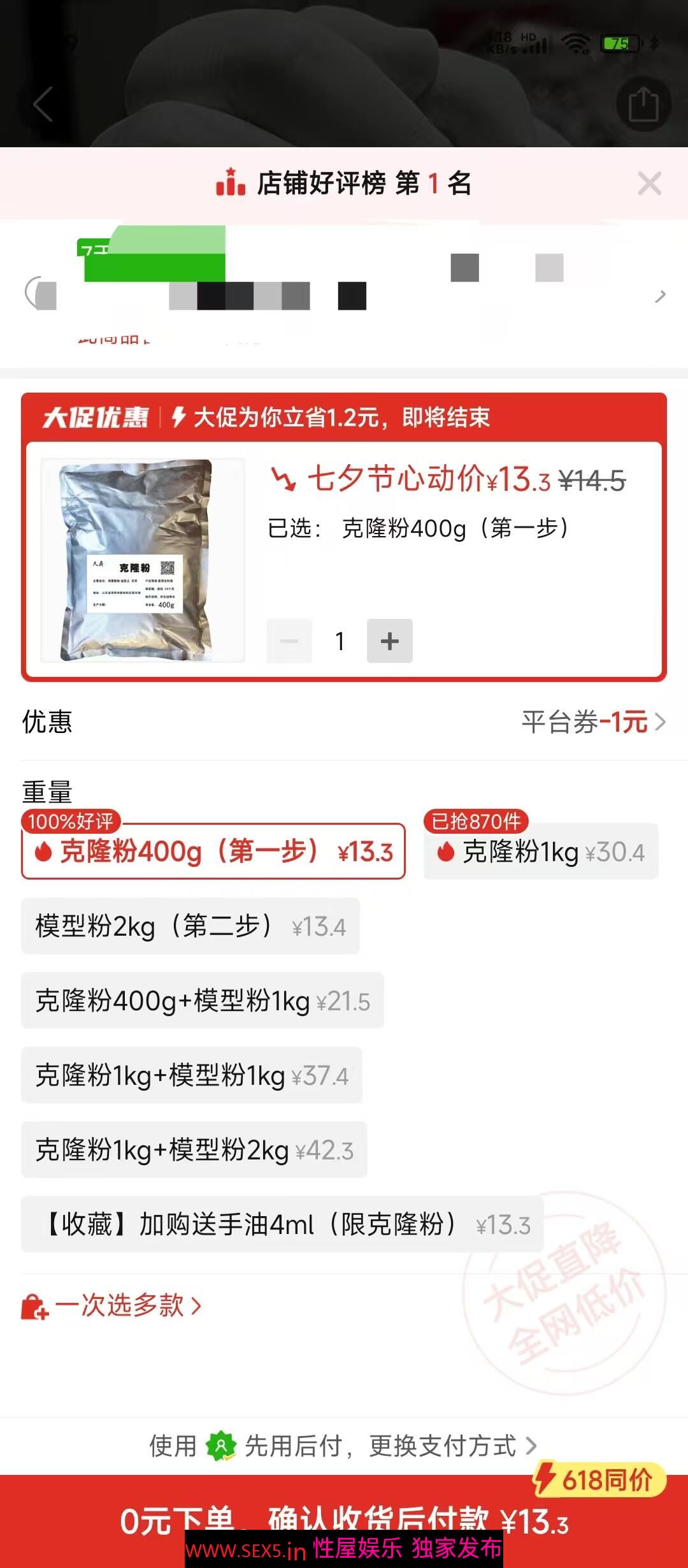 我的好奇心就控制不住了,非常想尝试一下。这个价格还是有点高,但很多东西可以分开购买,或者找其他东西代替。经过最后研究只购买了克隆粉和液态硅胶。