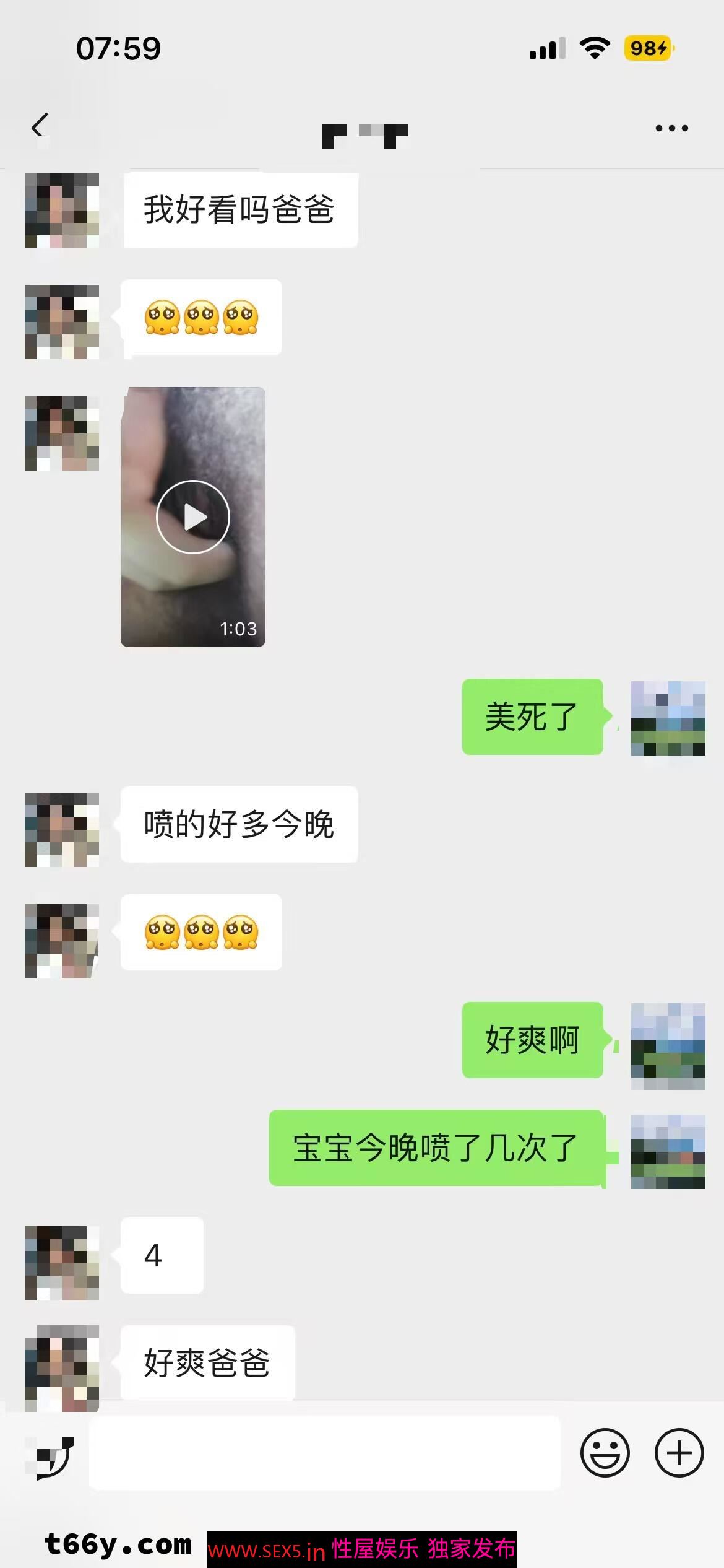 在见不到面的时候又开始了每天在手机上的各种聊骚,挑逗,趁家人不在和睡觉的时候就给我发照片和视频