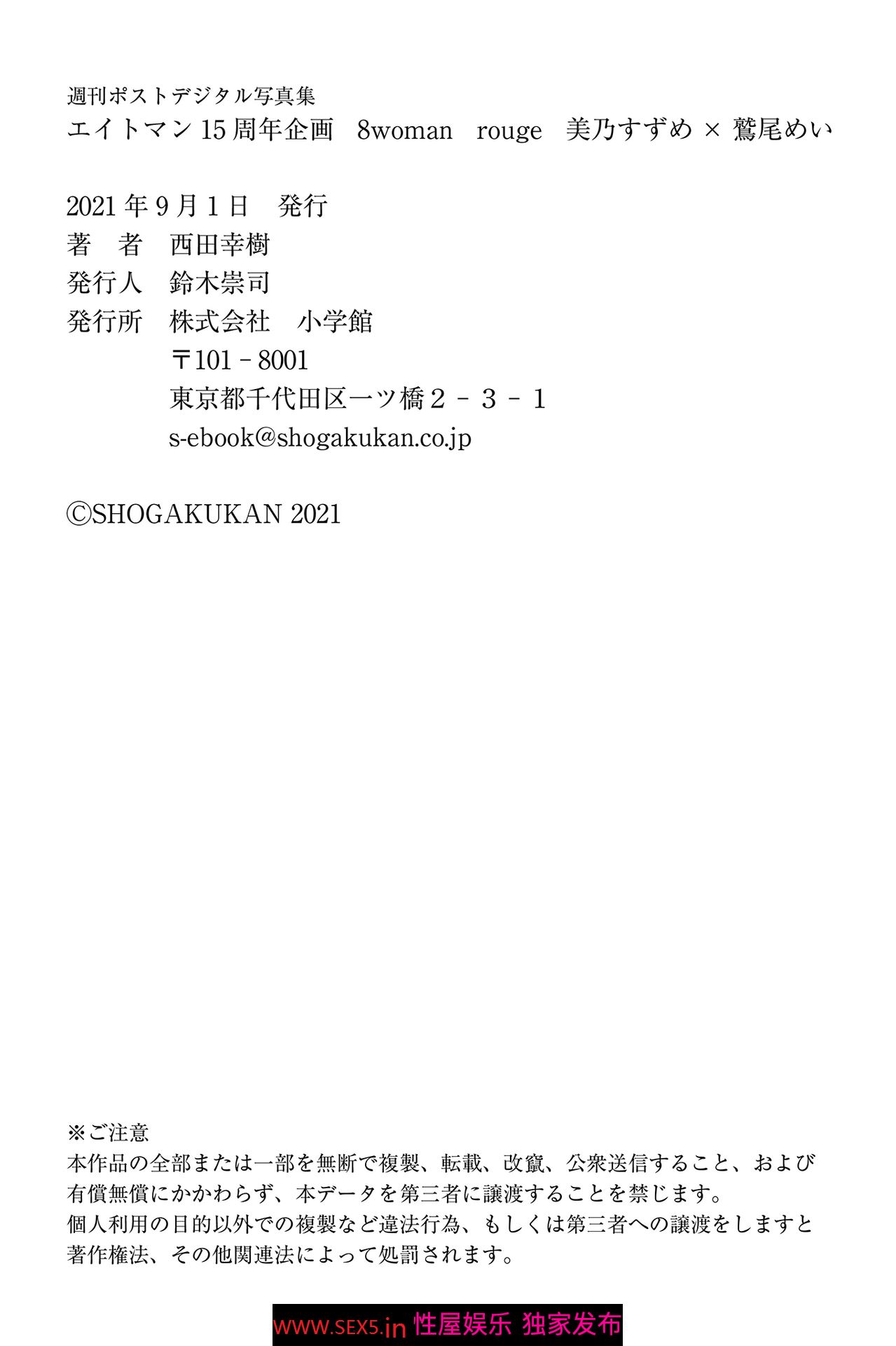 » [亞洲] 2021.09.01 エイトマン15周年企画 8woman rouge 美乃すずめ×鷲尾めい 週刊ポストデジタル写真集 [80P]